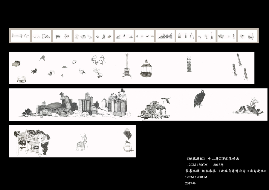 校园组获奖作品展现出鲜明的当代特征。吴晨凯的《桃花源记》是一组由十二联电子屏组成的定格动画影像装置股市配资,通过数字媒介赋予古典文本新活力;张龙的《云逸九歌》运用纸本水墨笔法与形式语言,重释《楚辞·九歌》中的文化意象;刘钰的《南山印迹》则以个人化的自然经验为切入点,探索城市化进程中人与自然关系的再观照。
